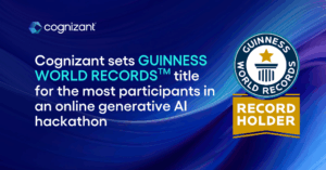 ગિનેસ વર્લ્ડ રેકોર્ડ્સના સત્તાવાર એજ્યુડિકેટરે ઓનલાઇન જનરેટિવ એઆઈ હેકાથોનમાં સૌથી વધુ ભાગ લેનારાઓની કેટેગરીમાં કોગ્નિઝન્ટની સિદ્ધિની પુષ્ટિ કરી હતી. કંપનીએ ન કેવળ આ સિદ્ધિ મેળવી છે પરંતુ અગાઉનો રેકોર્ડ પણ તોડ્યો છે. વર્લ્ડ રેકોર્ડની આ ઇવેન્ટ ઉપરાંત તેણે 30,601 આઇડિયા અને વર્કિંગ પ્રોટોકોલ પણ રજૂ કર્યા હતા જે વિશ્વભરના એસોસિયેટ્સ દ્વારા સબમિટ કરવામાં આવ્યા હતા. વ્યસ્ત પ્રોફેશનલ્સ માટે એચઆર વેલનેસ કમ્પેનિયન એપથી માંડીને કંપનીના માર્કેટિંગ પ્રયાસોને ટેકો આપવા માટે બ્રાન્ડ કમ્પ્લાયન્સ અને કોર્પોરેટ ઓળખ ચકાસે તેવી એપ સુધીના વિવિધ પ્રોજેક્ટ્સ સબમિટ કરવામાં આવ્યા હતા.