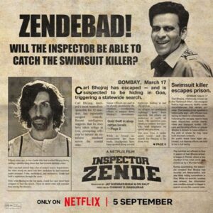 મુંબઈ | ૦૭ ઓગસ્ટ ૨૦૨૫: નેટફ્લિક્સ પર ૫ સપ્ટેમ્બરે રિલીઝ થતી નવી ફિલ્મ ‘ઇન્સ્પેક્ટર ઝેંડે’ એક જુની મુંબઈની કિસ્સાની આધારિત છે. જ્યાં ૭૦-૮૦ના દાયકામાં એક ખતરનાક ગુનેગાર ‘સ્વિમસૂટ કિલર’ તિહાર જેલમાંથી ભાગી જાય છે. ત્યારબાદ એક ઇમાનદાર પોલીસ ઇન્સ્પેક્ટર તેને પકડી પાડવા માટે બધું જૂકી દે છે.