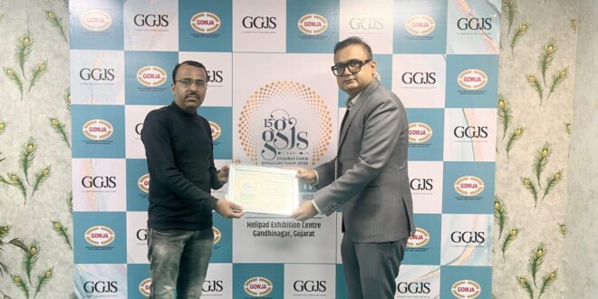 ગુજરાત, અમદાવાદ | ૧૮મી સપ્ટેમ્બર ૨૦૨૫: GGJS (ગુજરાત ગોલ્ડ જ્વેલરી શૉ) માં અમદાવાદના ભાવિન વોરાનું જ્વેલરી ડિઝાઇન અને કૌશલ્ય વિકાસમાં તેમના બહુમૂલ્ય યોગદાન બદલ GGJS ના ડિરેક્ટર શ્રી પિયુષભાઇ આચાર્ય દ્વારા સન્માન અને પ્રશંસા કરવામાં આવી. તેમની જ્વેલરી ડિઝાઇન ક્ષેત્રની ૨૦ વર્ષની કારકિર્દીમાં ઘણા બધા સ્ટુડેંટ્સને તાલીમ આપી અને જ્વેલરી ઇન્ડસ્ટ્રીમાં તક આપવામાં મદદરૂપ થયા છે. તેમની આ વિચારધારાની નોંધ લઈ જ્વેલરી ઇન્ડસ્ટ્રીએ બહુમાન કરી યોગ્ય વળતર આપ્યું.