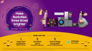 ગુરુગ્રામ, ભારત | 30 સપ્ટેમ્બર 2025 – ભારતની સૌથી મોટી કન્જ્યુમર ઇલેક્ટ્રોનીક્સ બ્રાન્ડ સેમસંગએ પોતાની 4 કલાકમાં અત્યંત ઝડપી ઇન્સ્ટોલેશન અને ડેમો સર્વિસ શરૂ કરી હોવાની ઘોષણા કરી છે, જેની ડિઝાઇન ગ્રાહકોને અંતરાયમુક્ત અને ચિંતામુક્ત તહેવારની ખરીદીનો અનુભવ પૂરો પાડવા માટે કરવામાં આવી છે.
